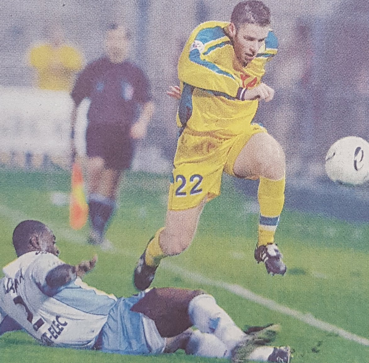 Avec six défaites au cours des sept premiers matchs et dix-huit buts encaissés, le début de la saison 2000-2001 du Racing est catastrophique, ponctué de baffes mémorables (0-4 contre Lille et 1-4 contre Bastia). Toutefois, l’équipe commence à relever la tête en enchaînant deux victoires et un nul lorsque le FC Nantes se présente à la Meinau. Les Nantais sont aussi en difficulté et la confrontation peut être l'occasion pour l'une des équipes de repartir de l'avant (ici Njanka contre Armand).