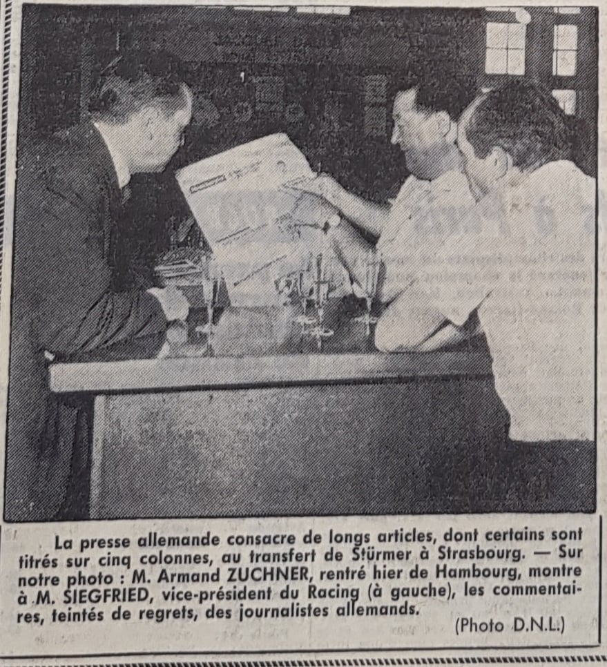 Toujours au cours de ce mois de septembre 1961, les dirigeants du Racing annoncent, un verre de champagne à la main, l’arrivée du buteur allemand du Hambourg SV : Klaus Stürmer. Une annonce choc car la situation financière est catastrophique pour le football français, les clubs sont contraints de s'appuyer prioritairement sur des jeunes joueurs. A Strasbourg, la mairie accorde toutefois au Racing un prêt remboursable pour renforcer l'équipe.