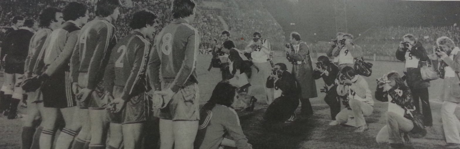 Ce soir-là, en Coupe des clubs champions - l’ancêtre de la Ligue des champions - le Racing évolue dans un stade en pleine reconstruction. Seule la tribune Ouest, qui n’est pas encore le kop, est entièrement achevée. Elle a été prioritaire pour accueillir bureaux, boutique et salon de réception. Les autres tribunes, elles, n’ont pas encore vu le début réel des travaux. Sur cette photo prise avant le coup d’envoi, on aperçoit au second plan la nouvelle tribune Ouest.